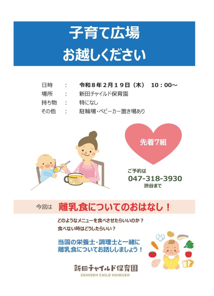 新田チャイルド保育園|2月 子育て広場のお知らせ